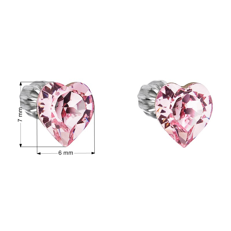 Parametre strieborných náušníc kôstok s kryštálmi Swarovski ružové srdce 31139.3