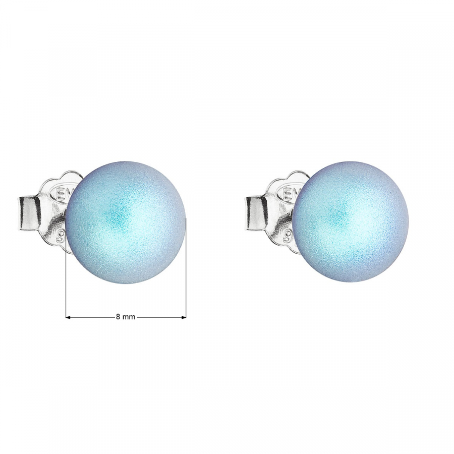 Strieborné náušnice pecka so svetlo modrou matnou Swarovski perlou 31142.3