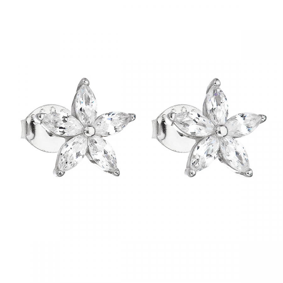 Strieborné náušnice pecka so zirkónom biela kvietka 11069.1