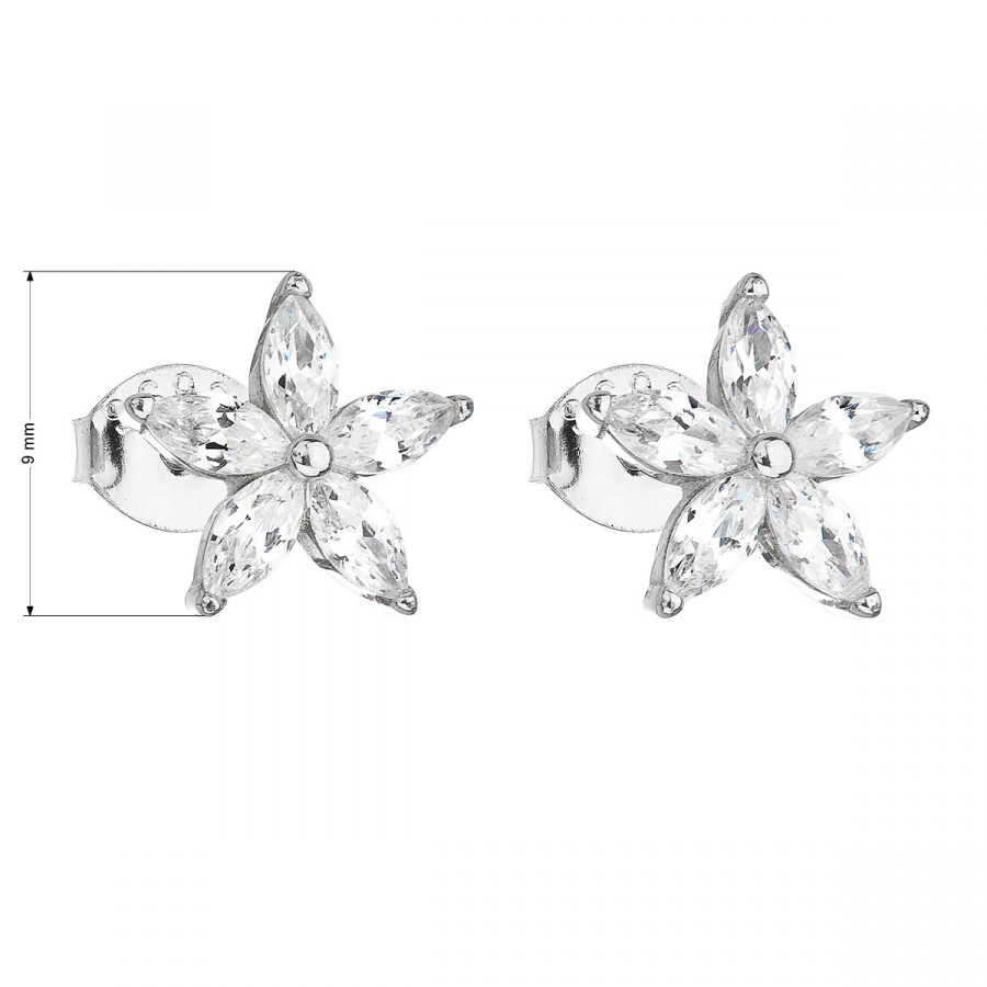 Parametre strieborných náušníc pecka so zirkónom biela kvietka 11069.1
