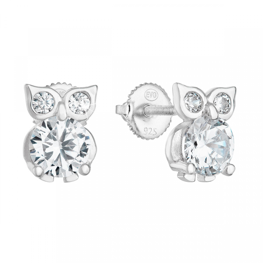 Strieborné náušnice pecka so zirkónom biela sova 11269.1