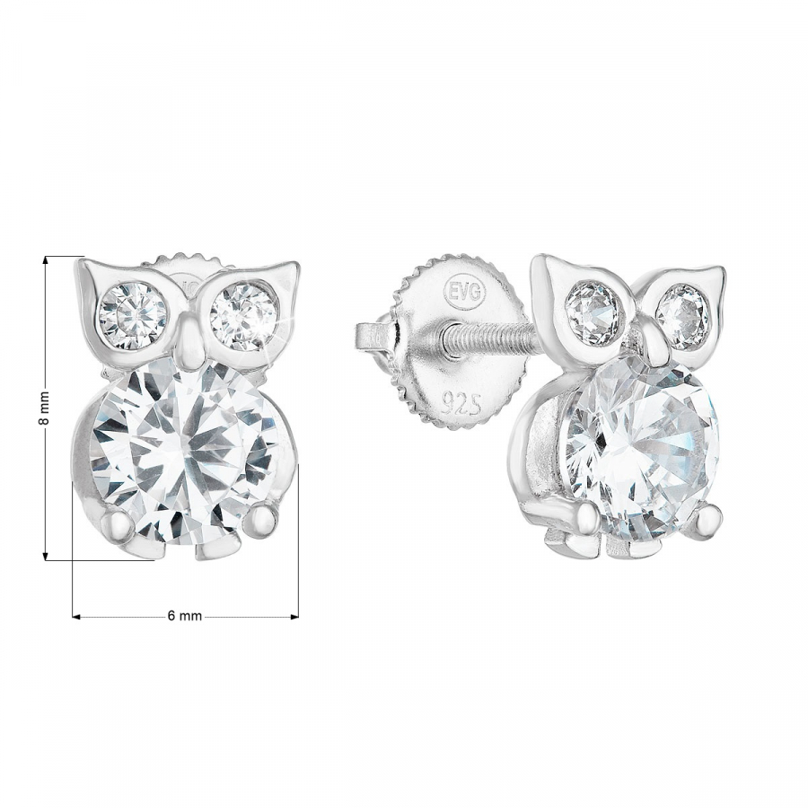 Parametre strieborných náušníc pecka so zirkónom biela sova 11269.1