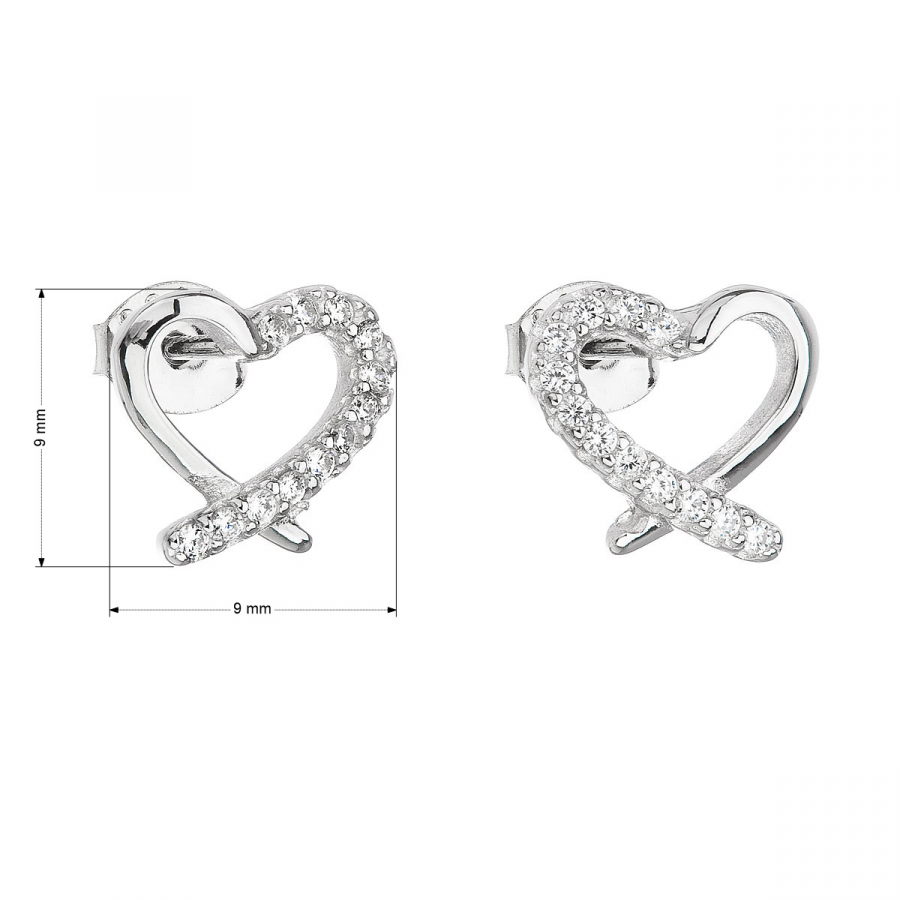 Parametre strieborných náušníc pecka so zirkónom biele srdce 11079.1