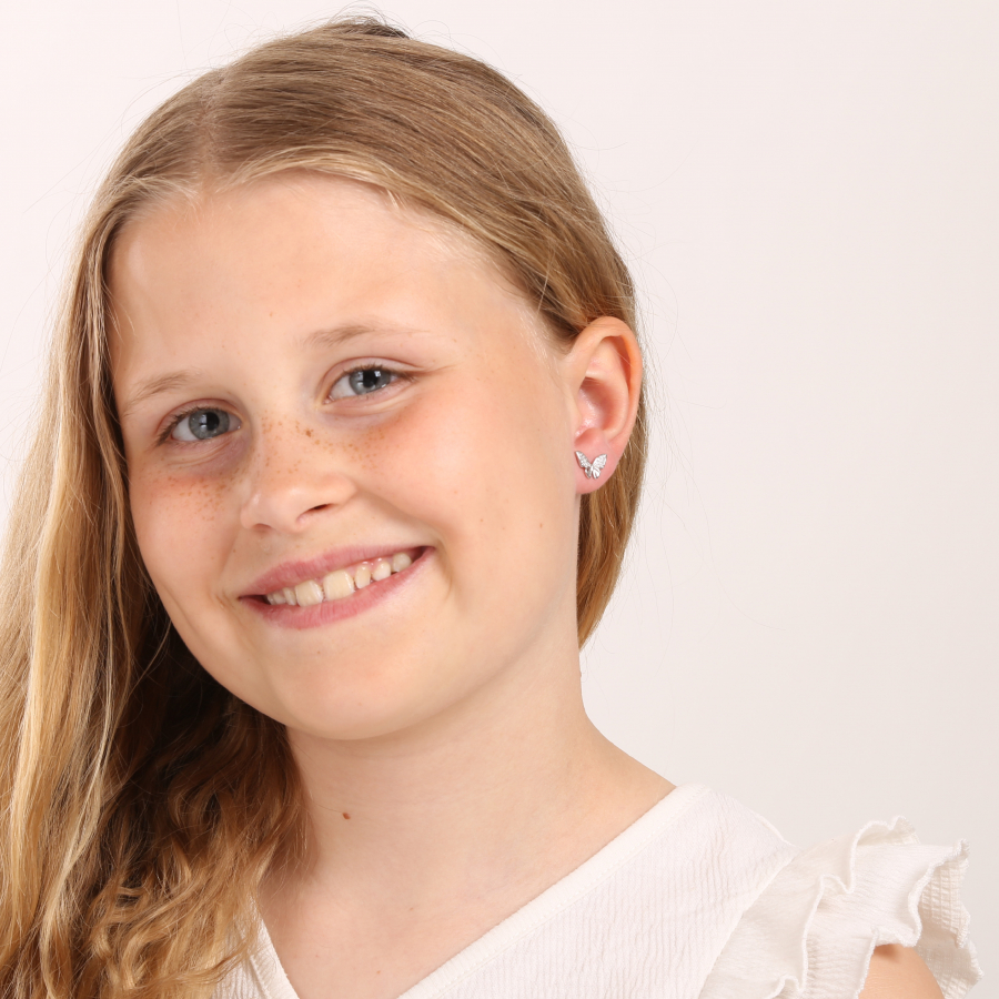 Motýlikové náušnice typu kôstky vyrábame zo striebra rýdzosti 925/1000, ktorého povrch je upravený ródiom. Ródium šperk ochraňuje proti sčernaniu, zožltnutiu alebo poškriabaniu. Drobné náušnice v tvare motýlika môžu byť krásnym poďakovaním.