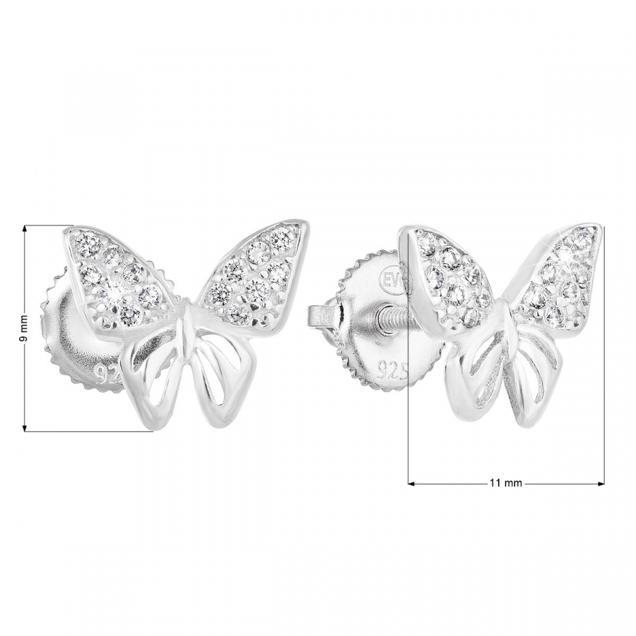 Parametre strieborných náušníc pecka so zirkónom biely motýľ 11311.1
