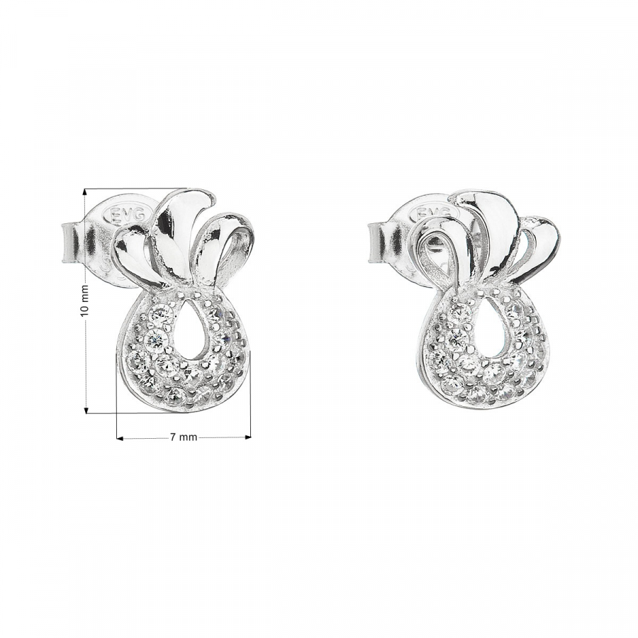 Parametre strieborných náušníc pecka so zirkónom v bielej farbe 11056.1
