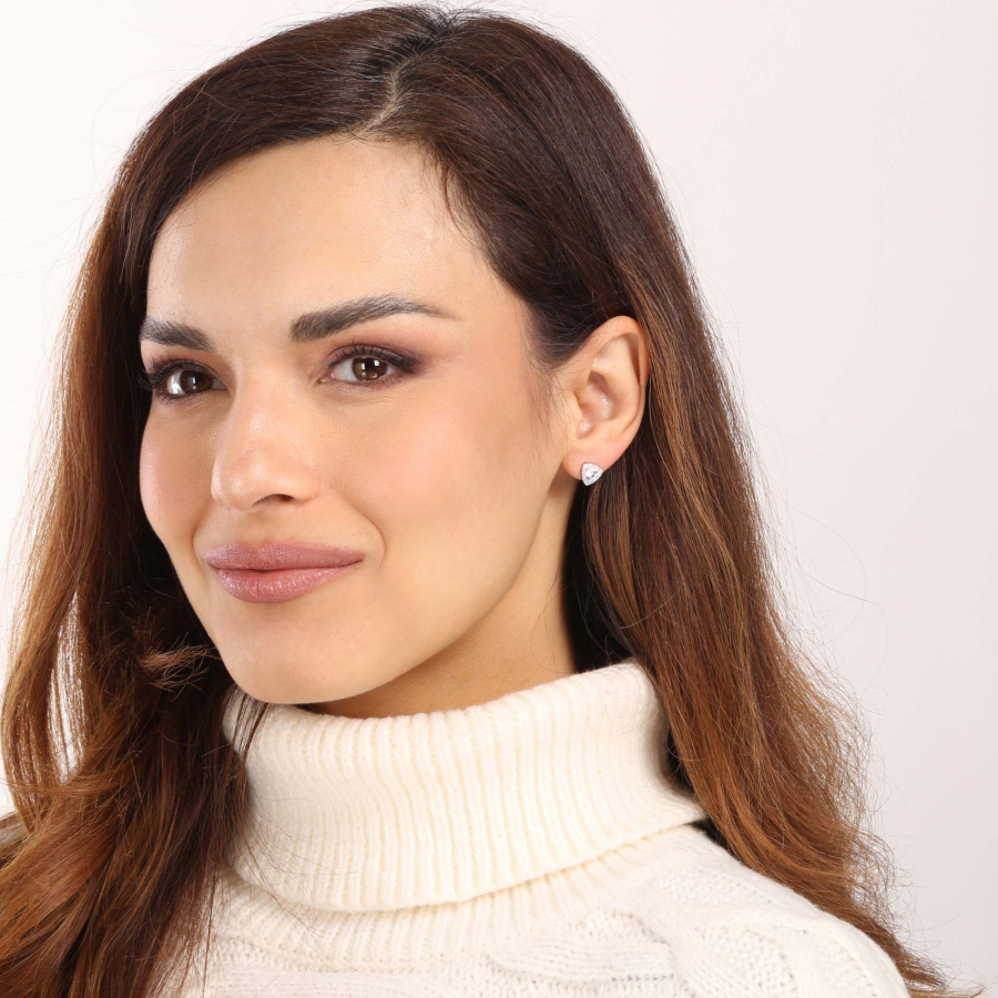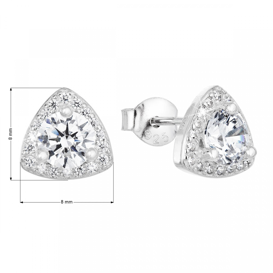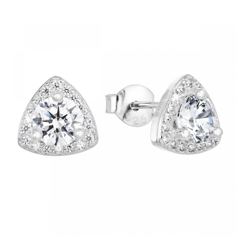 Náušnice sú tvaru trojuholníčkov a sú zdobené bielymi zirkónmi , ktoré šperk doslova rozžiaria. Zapínanie na puzete sa postará o to, aby náušnice na ušiach pohodlne držali.