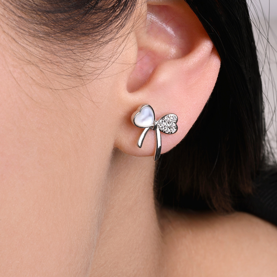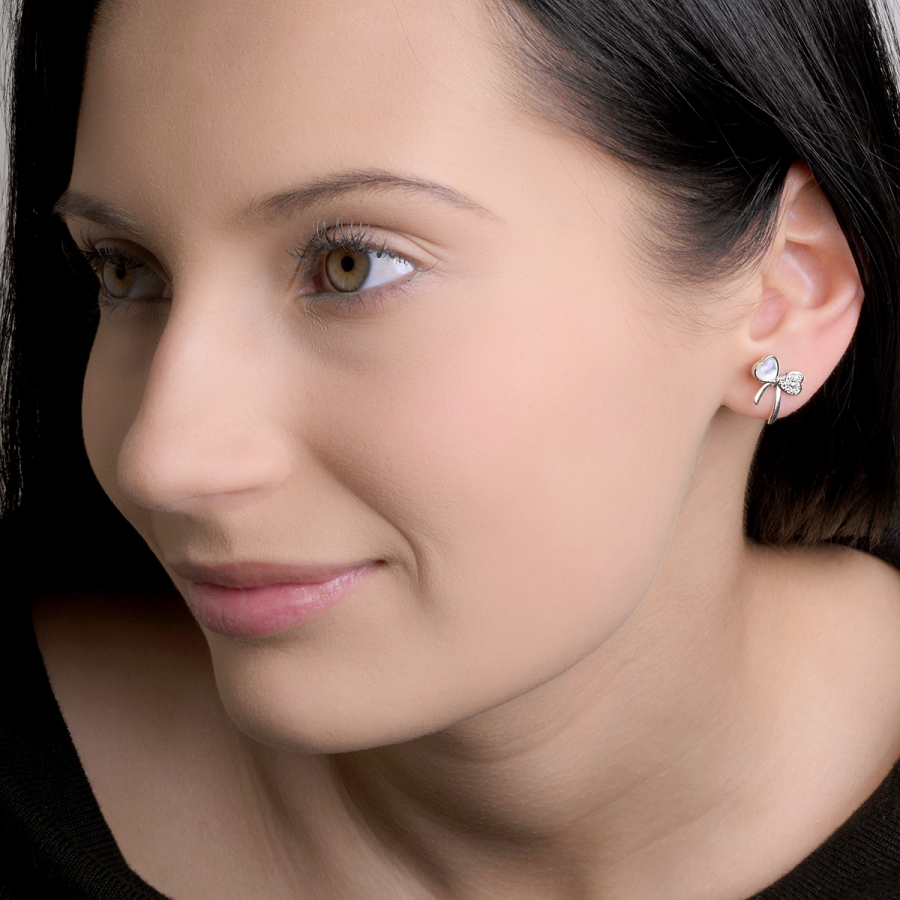 Strieborné náušnice perleťovej mašličky 11803.1
