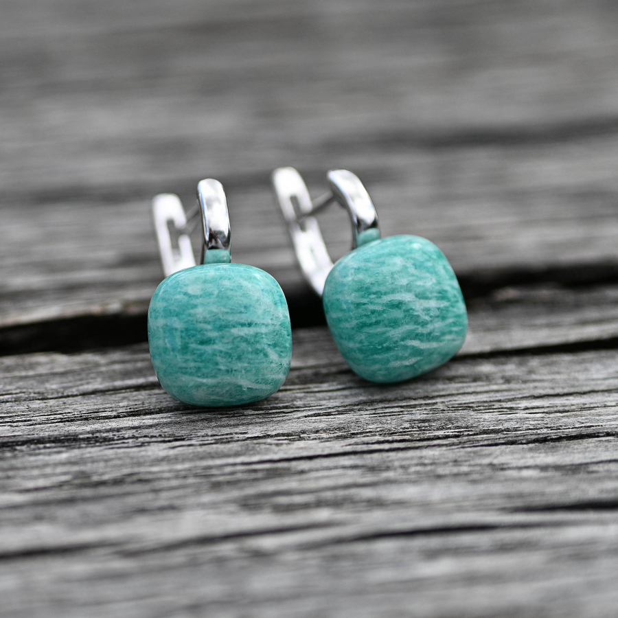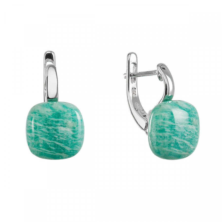 Strieborné náušnice s pravým amazonitom - harmonické spojenie elegancie a prírodnej energie.