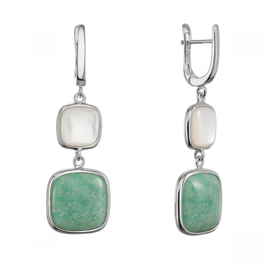 Strieborné náušnice s amazonitom a bielou perleťou 11742.3