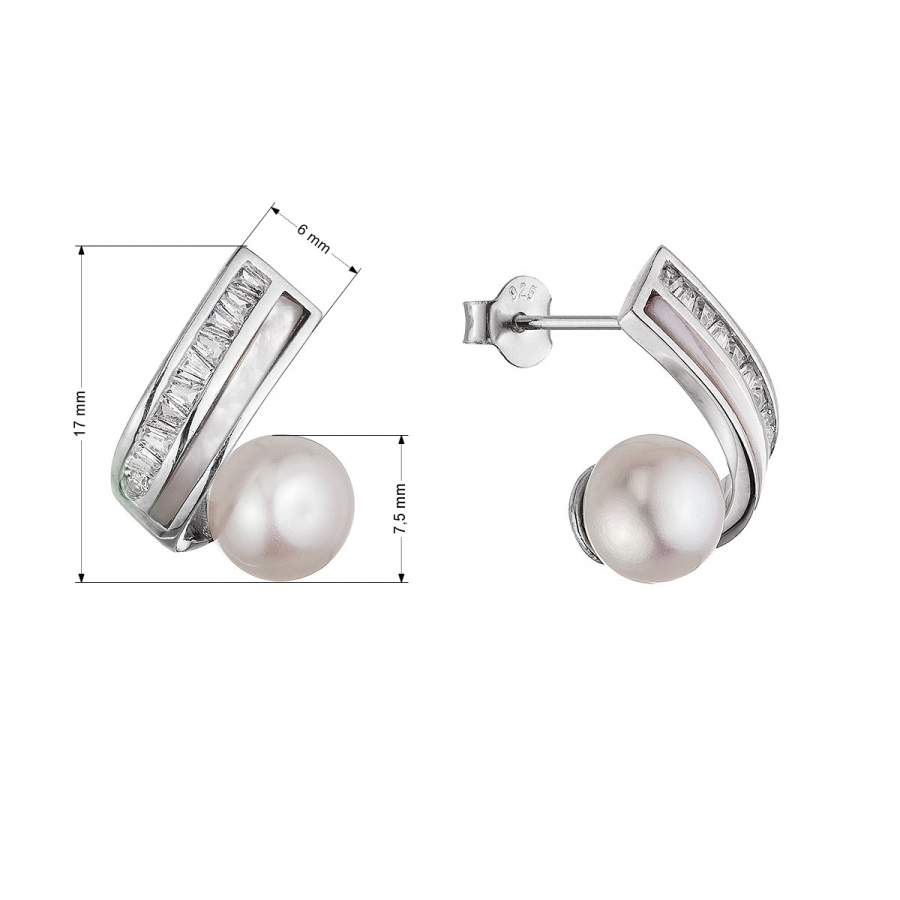 Strieborné náušnice s bielou riečnou perlou a perleťou 21112.1