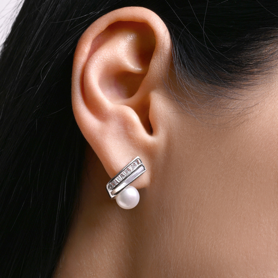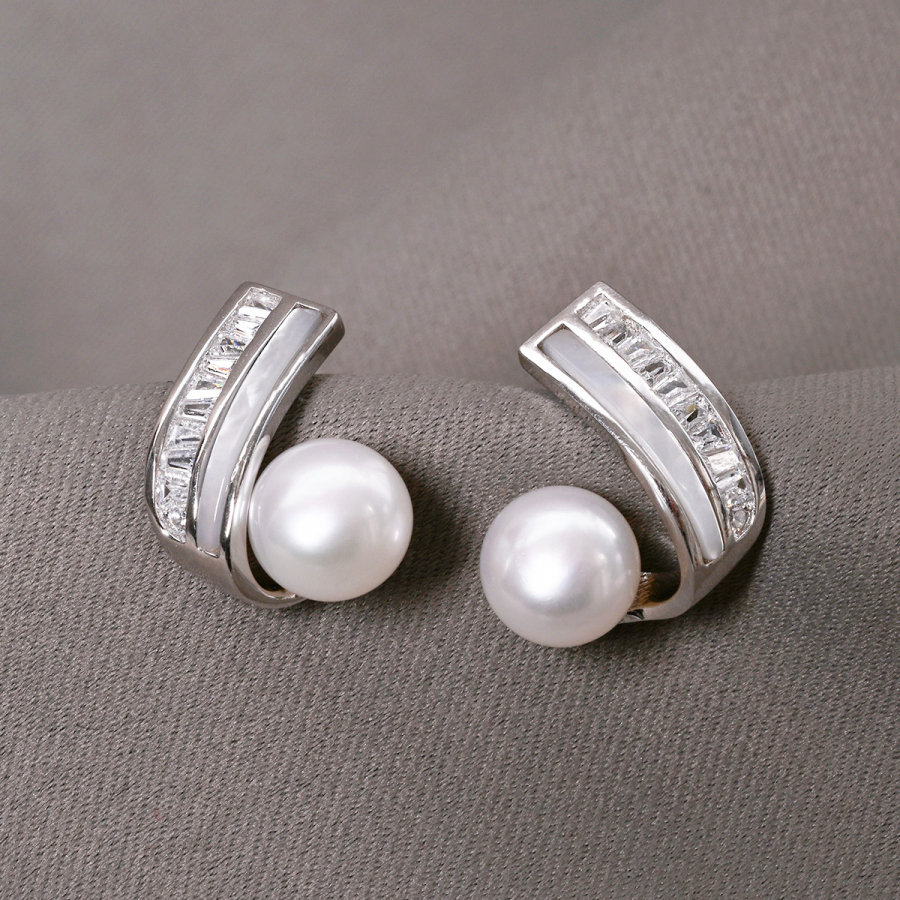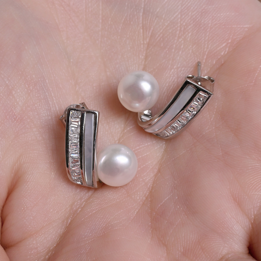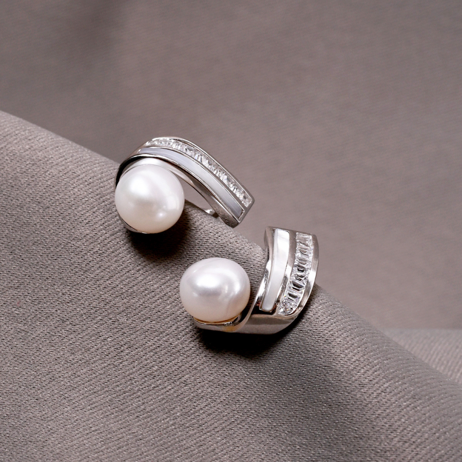 Moderné strieborné náušnice s pravou riečnou perlou vynikajú nevšedným dizajnom, ktorý kombinuje perleť, zirkóny a lesklé striebro . Klenutý tvar dodáva náušniciam dynamiku a jemný kontrast medzi perleťou a trblietavými zirkónmi vytvára luxusný dojem. Pravé riečne perly podčiarkujú ženskosť a eleganciu tohto šperku. Sú ideálnou voľbou pre tých, ktorí hľadajú originálny doplnok s nádychom luxusu. Skvele sa hodí k šatám aj business outfitu. Odporúčame zladiť s jemným perlovým príveskom alebo prsteňom s perleťou.