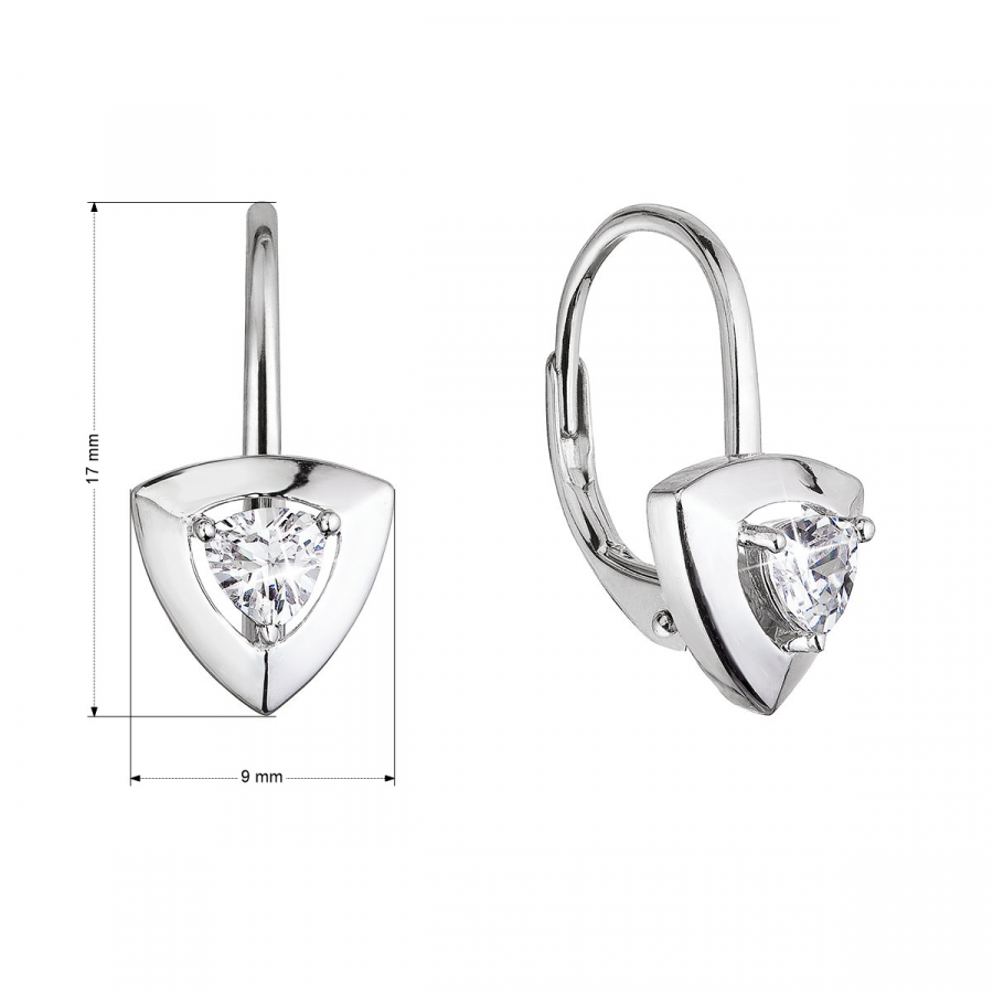 Zirkón umiestnený uprostred trojuholníka je rovnakého tvaru a predstavuje elegantný stredový prvok . Jeho ligot dodáva náušniciam nádych luxusu a vytvára dojem, že sa malý klenot zrodil z geometrických línií.