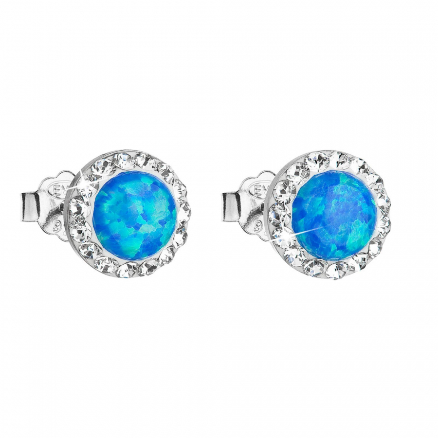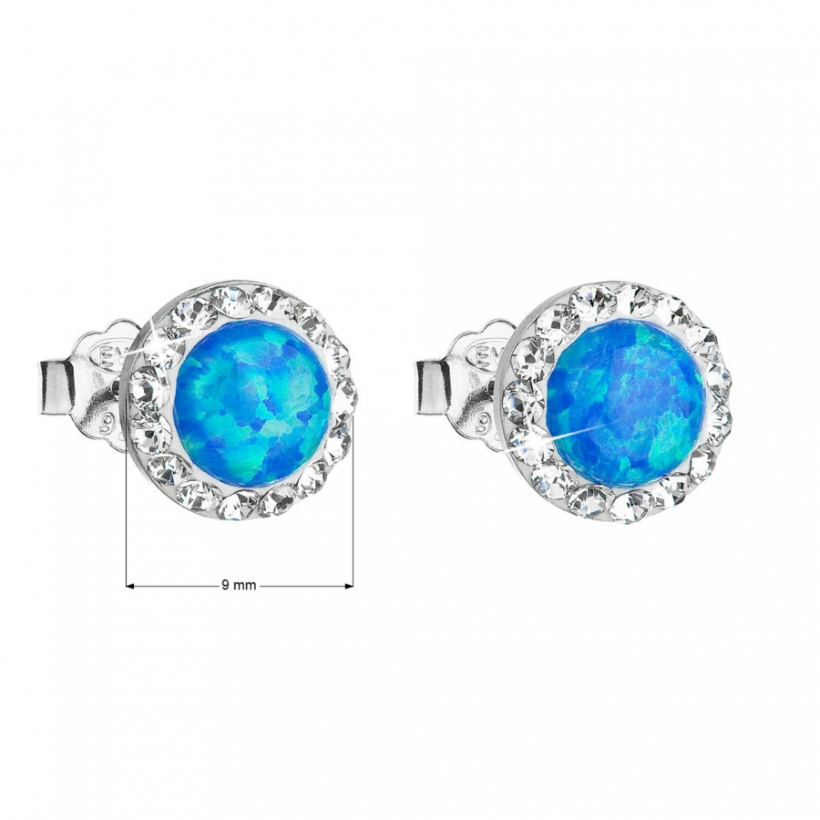 Strieborné náušnice s opálom a Preciosa kryštály 31217.1 modré