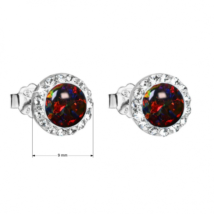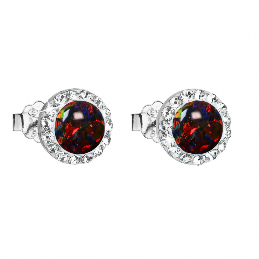 Strieborné náušnice s opálom a Preciosa kryštály 31217.1 ruby