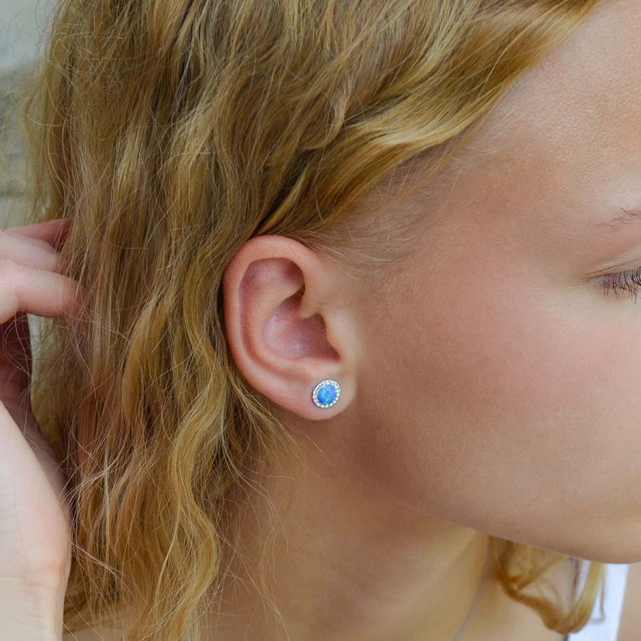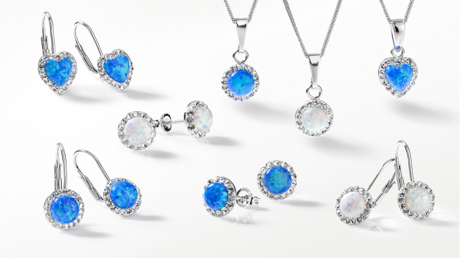 Strieborné náušnice s opálom a Preciosa kryštály 31317.1 modré