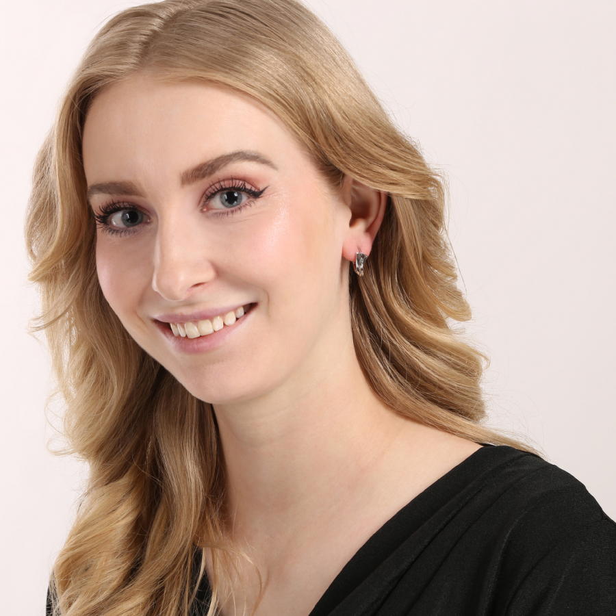 Prednú časť šperku tvorí jemne prehnutý obdĺžnik, ktorý sa smerom dole elegantne zužuje. Celý povrch je zdobený zvlnenou, prelisovanou štruktúrou, ktorá dodáva náušniciam dynamiku, hĺbku a osobitý šarm. Vďaka ródiovej úprave je strieborný šperk chránený proti sčernaniu a zachováva si svoj žiarivý lesk po dlhú dobu. Praktické zapínanie na klapku zaistí pohodlné a bezpečné nosenie.