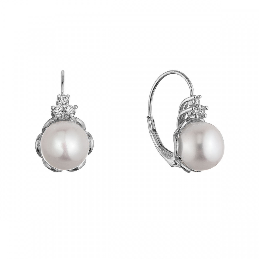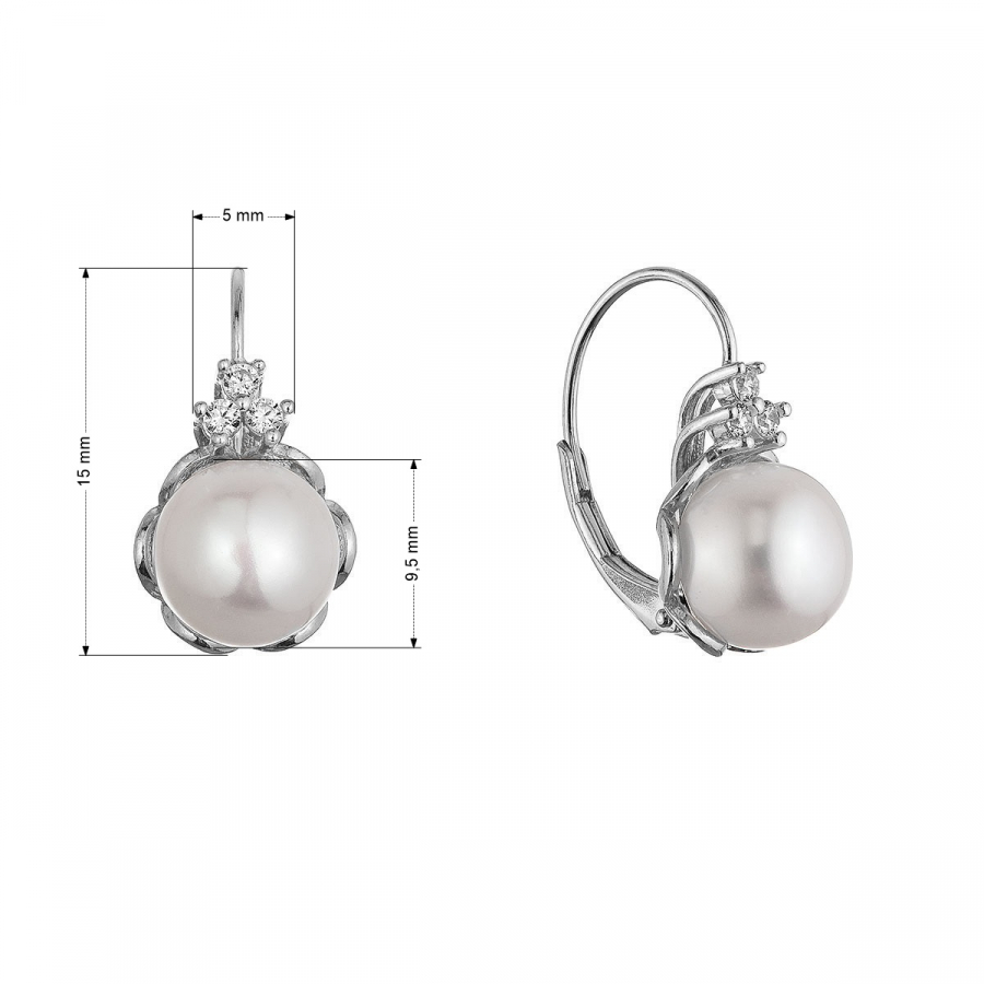 Perlové náušnice 21108.1 sú vyrobené zo striebra o rýdzosti 925/1000 s povrchovou úpravou ródiom a sú zdobené riečnou perlou kvality AA v bielej farbe. Okrem perál šperk zdobia aj malé tri trblietavé zirkóny , ktoré sú nad perlou a dodávajú šperku nádych luxusu.
