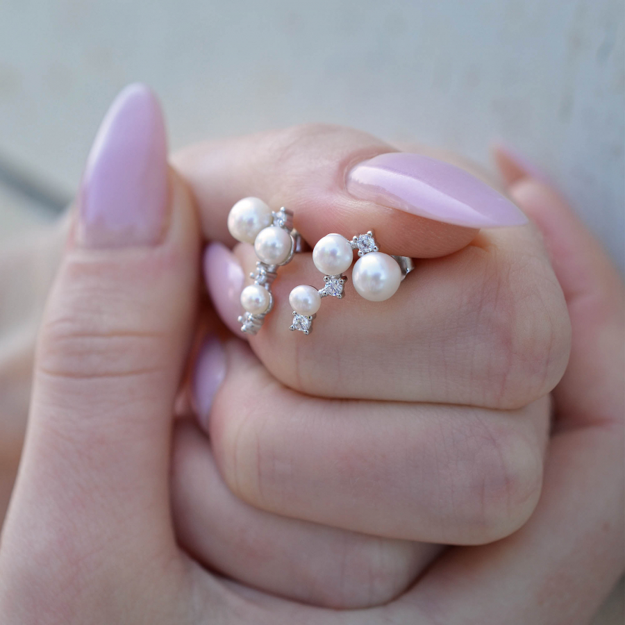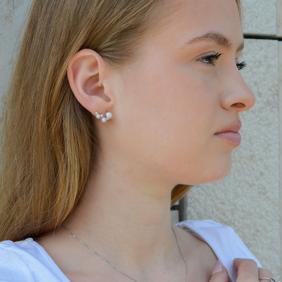 Jemné strieborné náušnice s riečnymi perlami a trblietavými zirkónmi pôsobia luxusne. Asymetrické usporiadanie perál vytvára moderný a pritom veľmi ženský vzhľad , ktorý sa hodí na každodenné nosenie i slávnostné príležitosti. Zirkóny krásne odrážajú svetlo a sú ako hviezdy medzi planétkami.