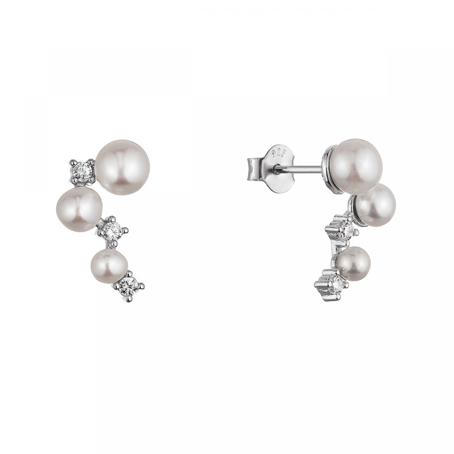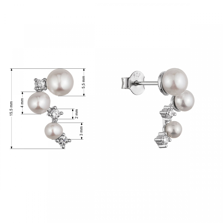 Strieborné náušnice s riečnymi perlami a zirkónmi 21111.1