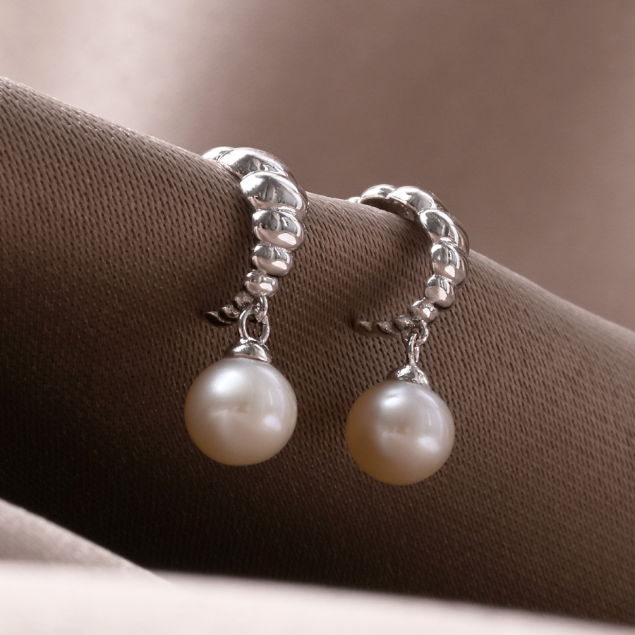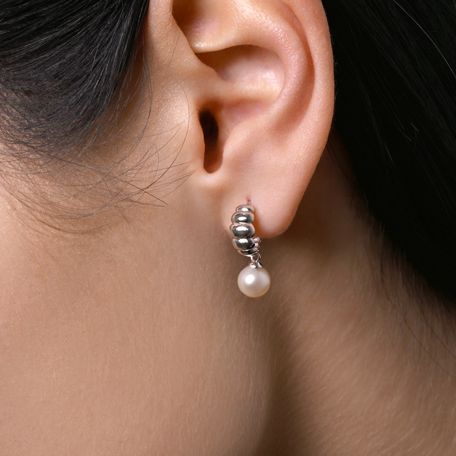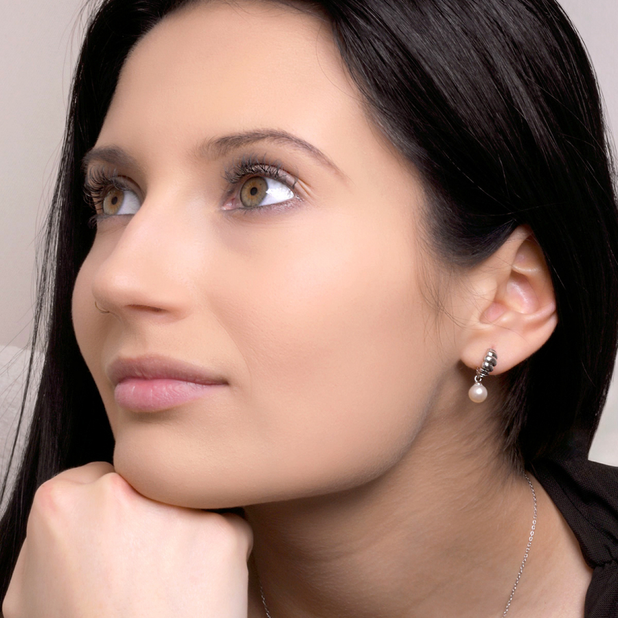 Strieborné náušnice so zavesenou riečnou perlou 21126.1