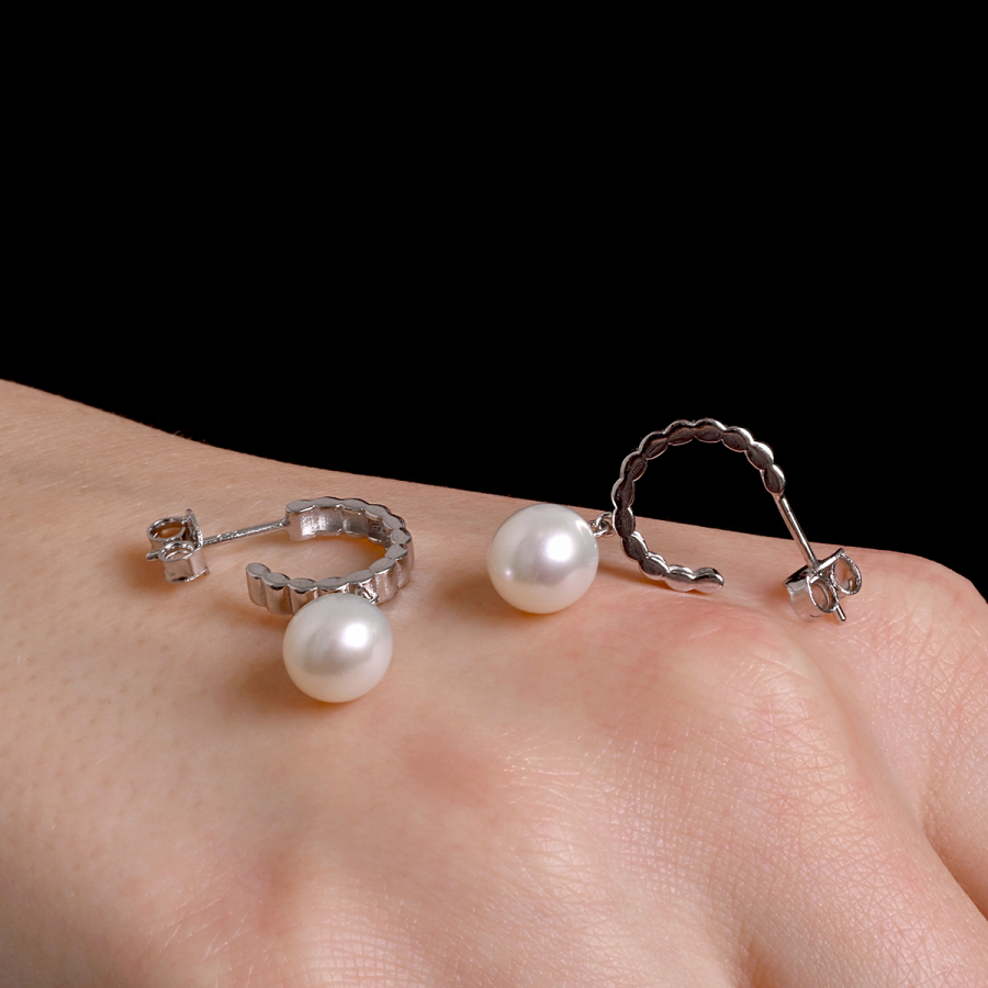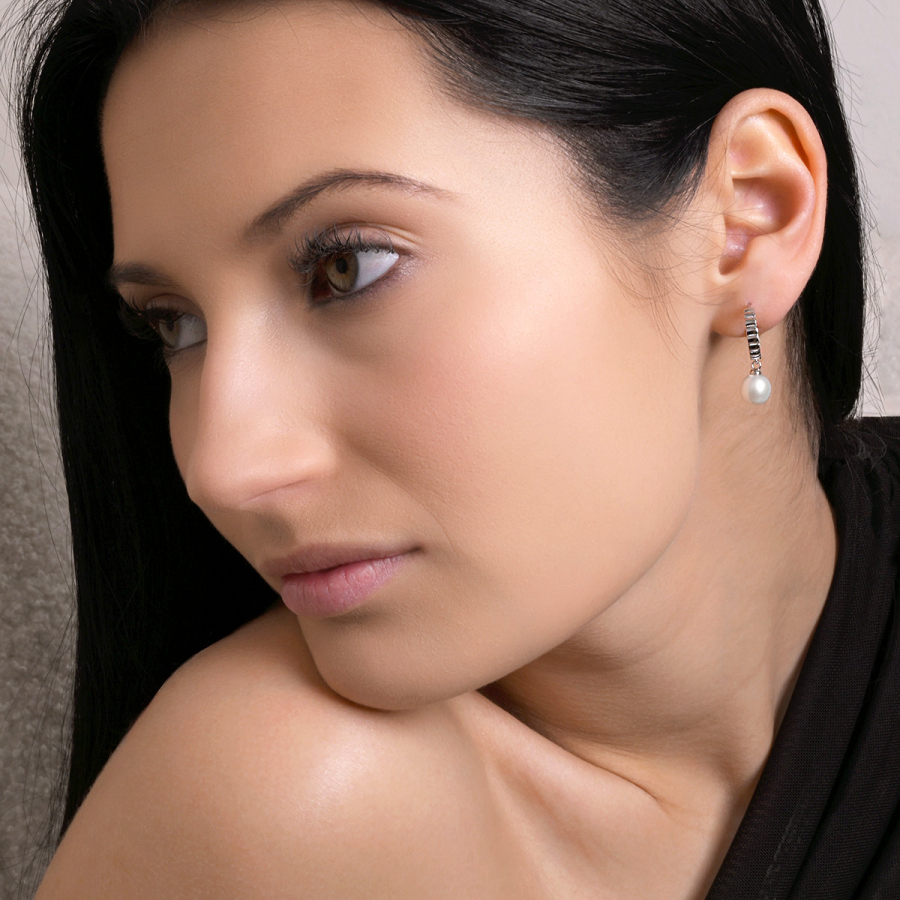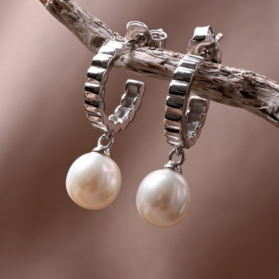 Strieborné náušnice so zavesenou riečnou perlou 21129.1