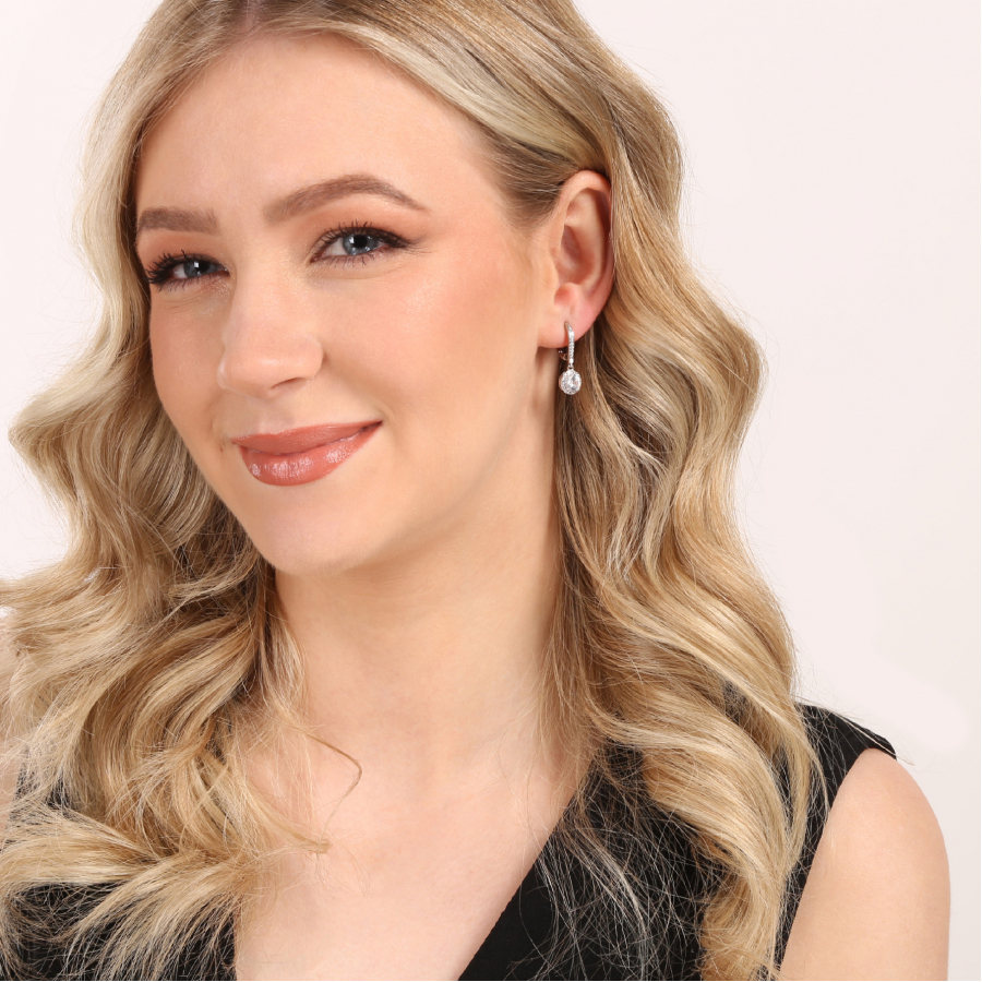 Náušnice majú zavesené koliesko so zirkónom vo farbe crystal , ktorý je obklopený kamienkami aj vo farbe crystal. Tieto kamienky pokračujú aj na vrchu náušnice, čím vytvárajú jednotný a elegantný vzhľad. Kov za zirkónom je dierovaný v tvare obdĺžnikov, čo dodáva náušniciam ľahkosť a vzdušnosť. Náušnice sú vhodné pre každého, pretože neobsahujú nikel.