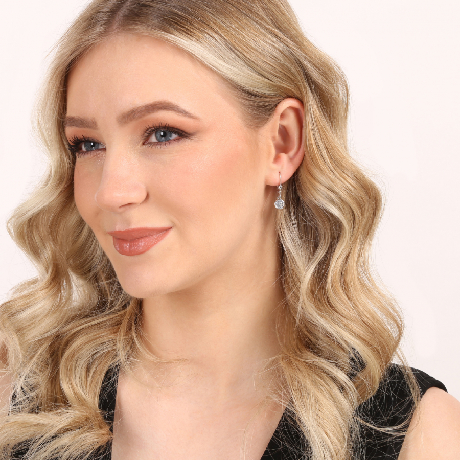Náušnice disponujú zaveseným kolieskom zdobeným veľkým zirkónom vo farbe crystal , ktoré dodáva náušniciam elegantný vzhľad. Náušnice majú charakteristický výstupok v tvare obrátenej kvapky umiestnený hore. Zapínanie náušníc je riešené pomocou klapky , ktorá zaisťuje bezpečné nosenie. Vďaka absencii niklu v materiáli sú tieto náušnice vhodné pre všetkých, aj pre osoby s citlivou pokožkou.