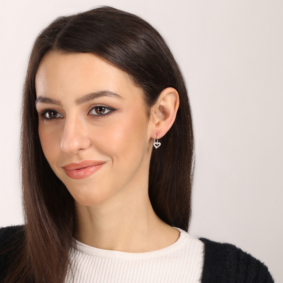 Očarujúce náušnice, kde sa neha srdca snúbi s trblietaním večerných hviezd. Každý pohyb premení lemovanie z drobných zirkónov na magickú svetelnú show, zatiaľ čo elegantný tvar srdiečok rozpráva príbeh nadčasovej romantiky. Tieto visiace náušnice 11717.1 z rhodiovaného striebra rýdzosti 925/1000 sú stelesnením decentného luxusu. Ich ľahký, vzdušný design prináša sofistikovanú eleganciu do každého outfitu. Bezpečné zapínanie na klapku zaistí, že vám náušnice zostanú verným spoločníkom pri všetkých príležitostiach.