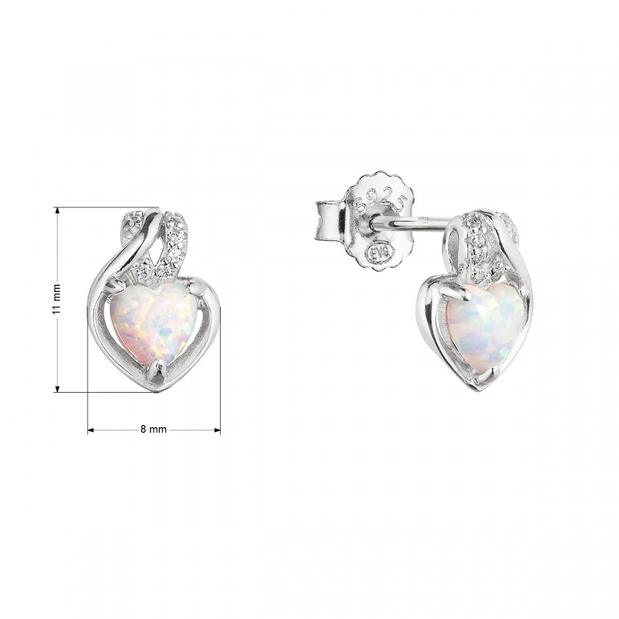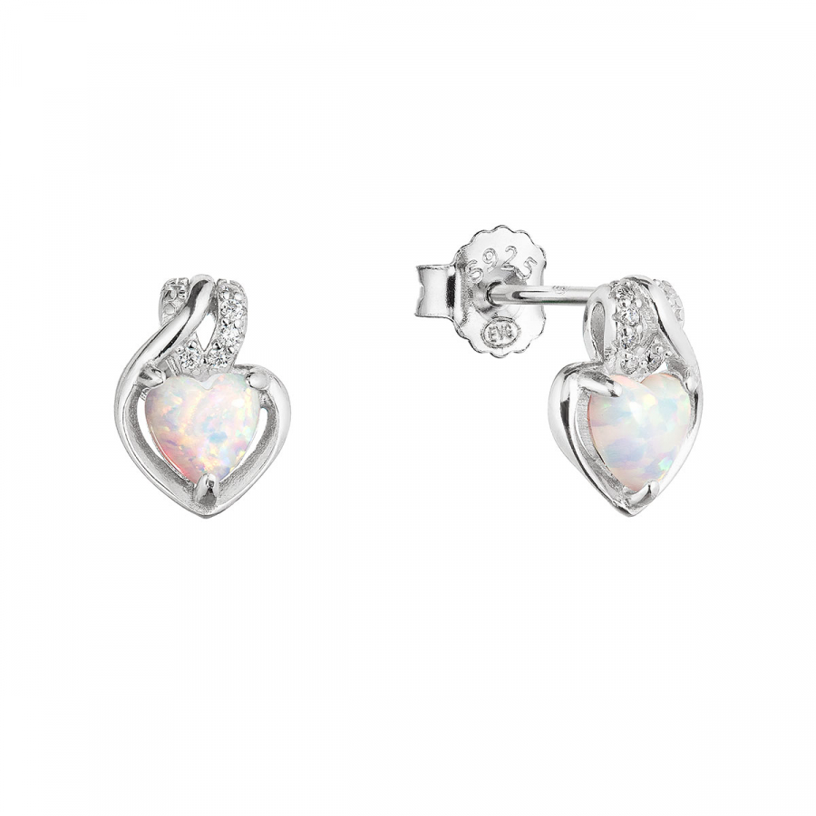 Strieborné náušnice srdca z bieleho syntetického opálu a zirkónmi 11469.1 white