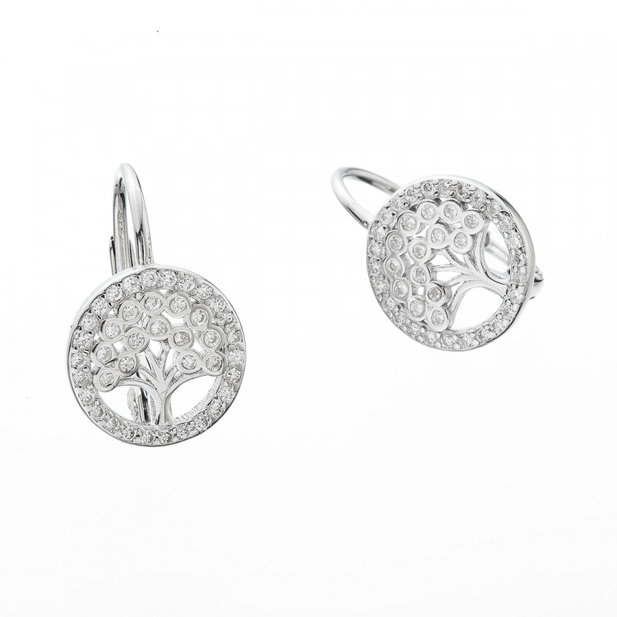 Strieborné náušnice strom života so zirkónmi 11713.1