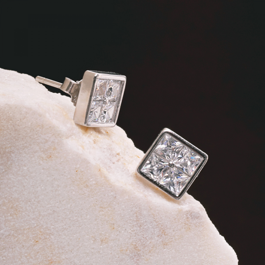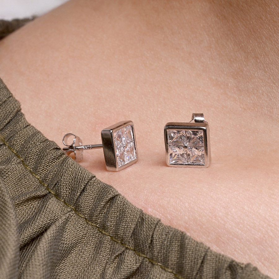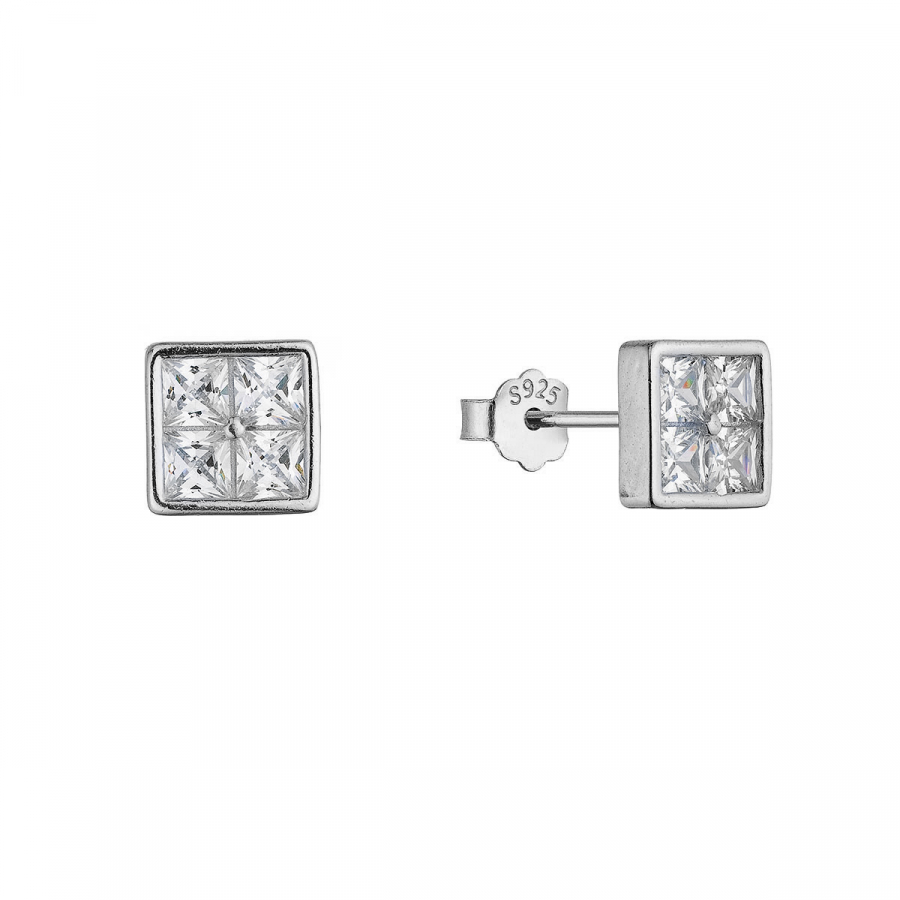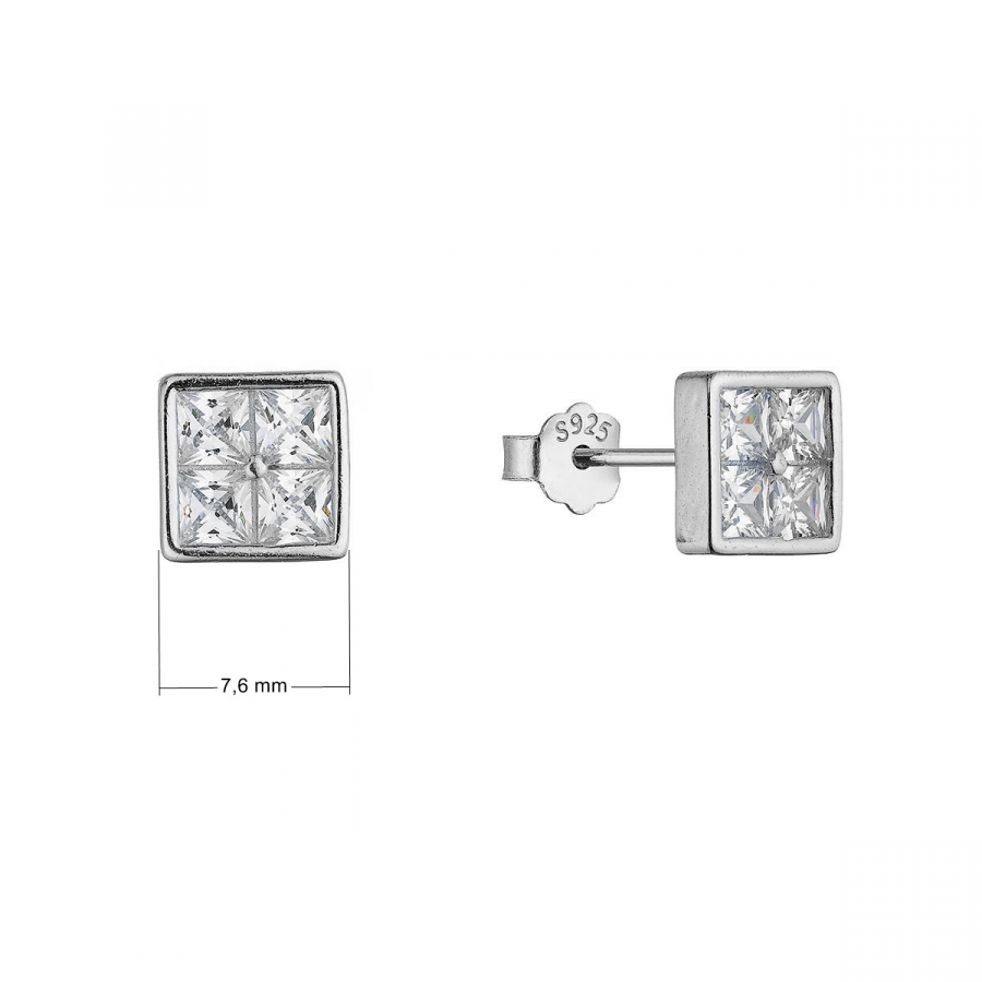 Strieborné náušnice štvorčeky so zirkónmi 11748.1