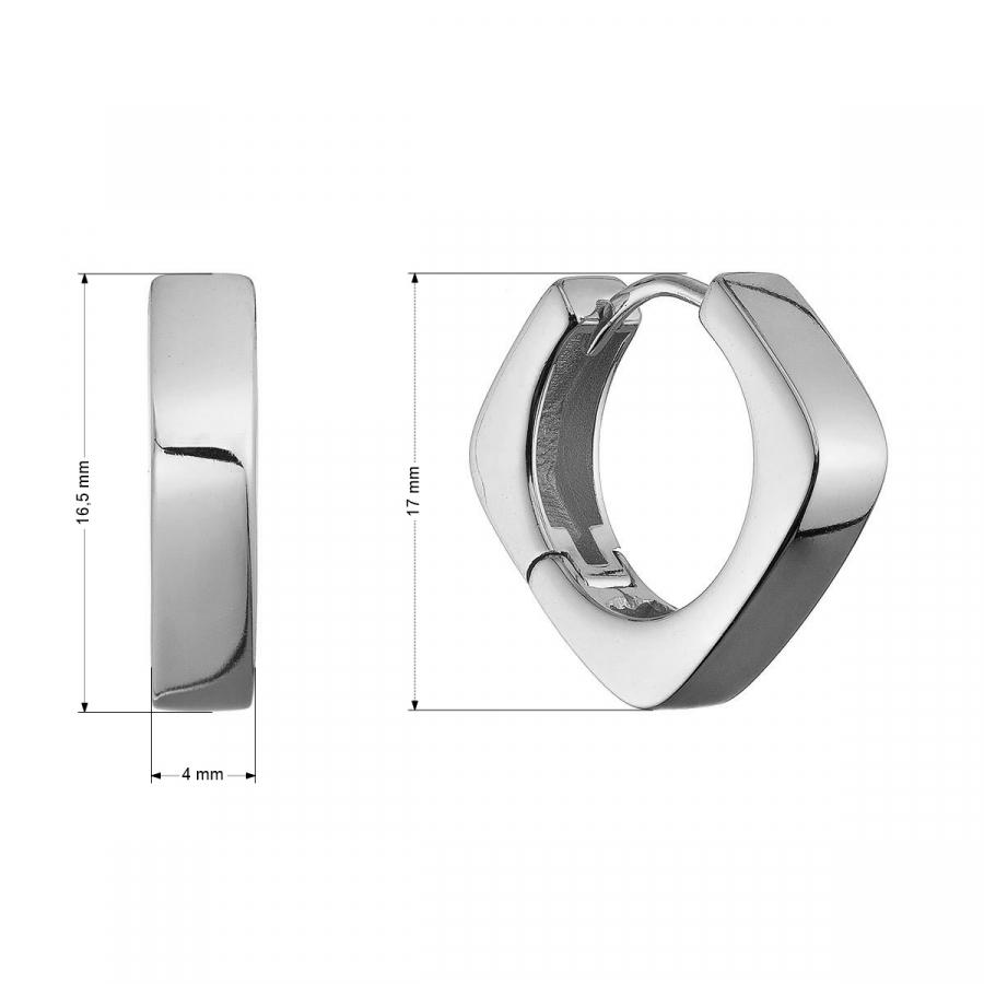 Tieto náušnice vás zaujmú netradičným poňatím klasických kruhov – namiesto obvyklého okrúhleho tvaru majú podobu otočených štvorčekov. Ostré, ale zároveň elegantne zaoblené línie vytvárajú výrazný geometrický efekt, ktorý okamžite pritiahne pozornosť. Náušnice sú robustné, masívne a vďaka širšiemu profilu krásne sedia na uchu.