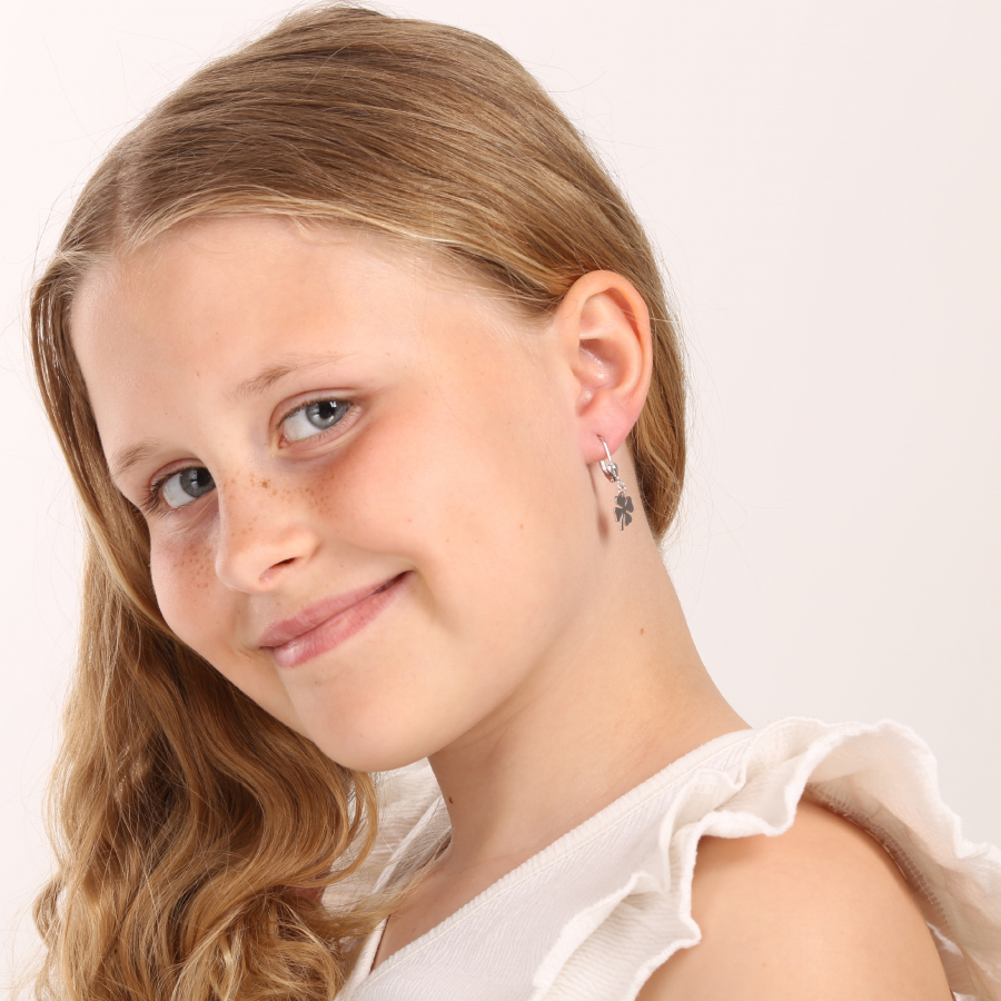 Žiarivé visiace náušnice v tvare štvorlístka prinášajú do vášho štýlu nádych šťastia a elegancie.