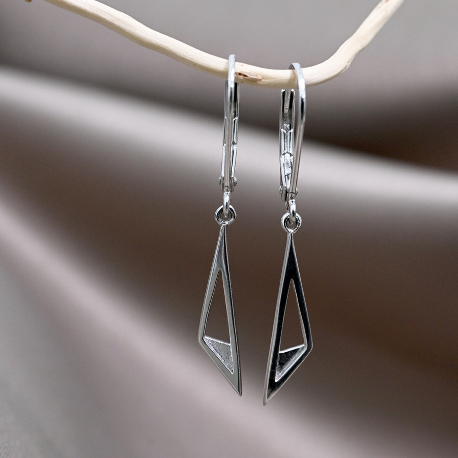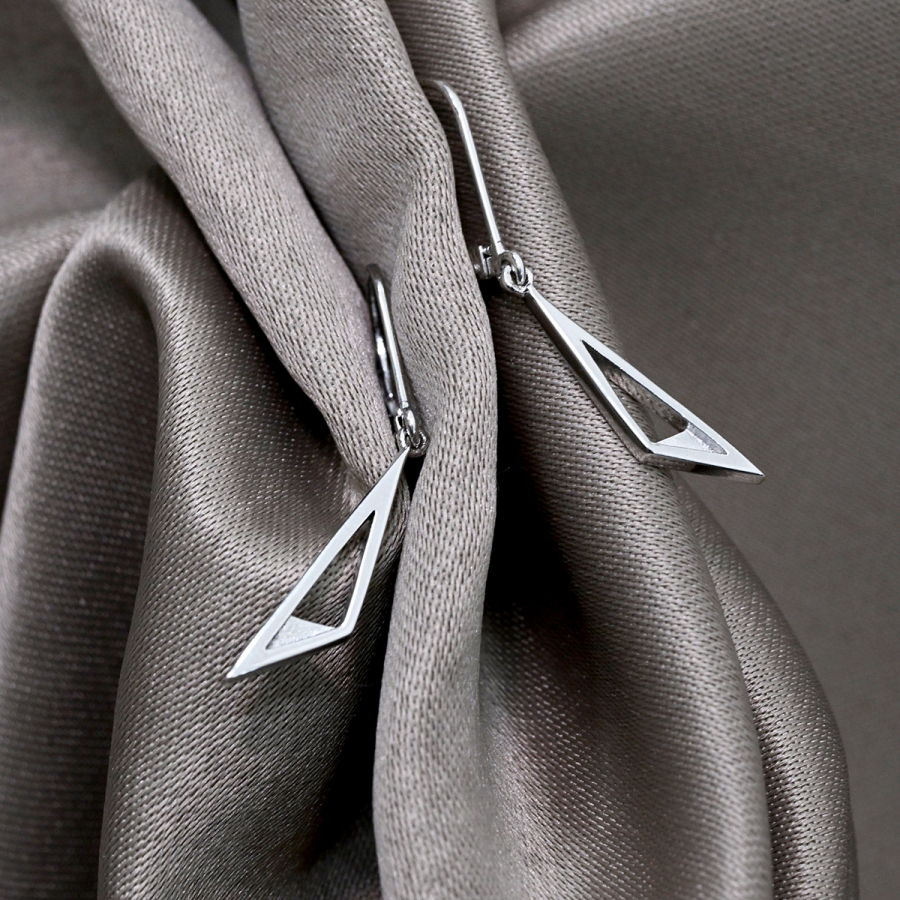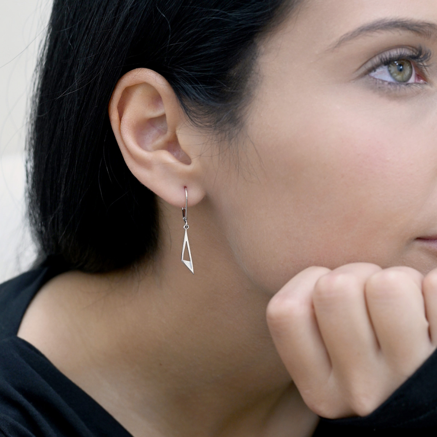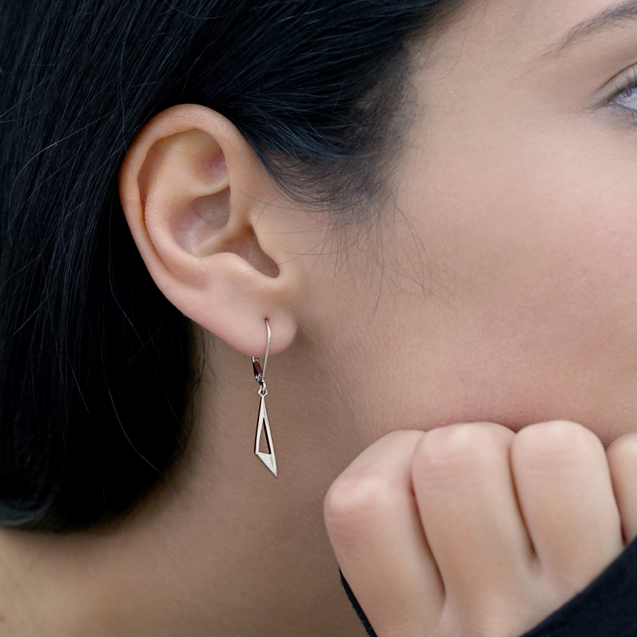 Minimalistické visiace náušnice v modernom geometrickom tvare. Tieto jednoduché, ale zaujímavé náušnice skvele doplnia váš outfit.