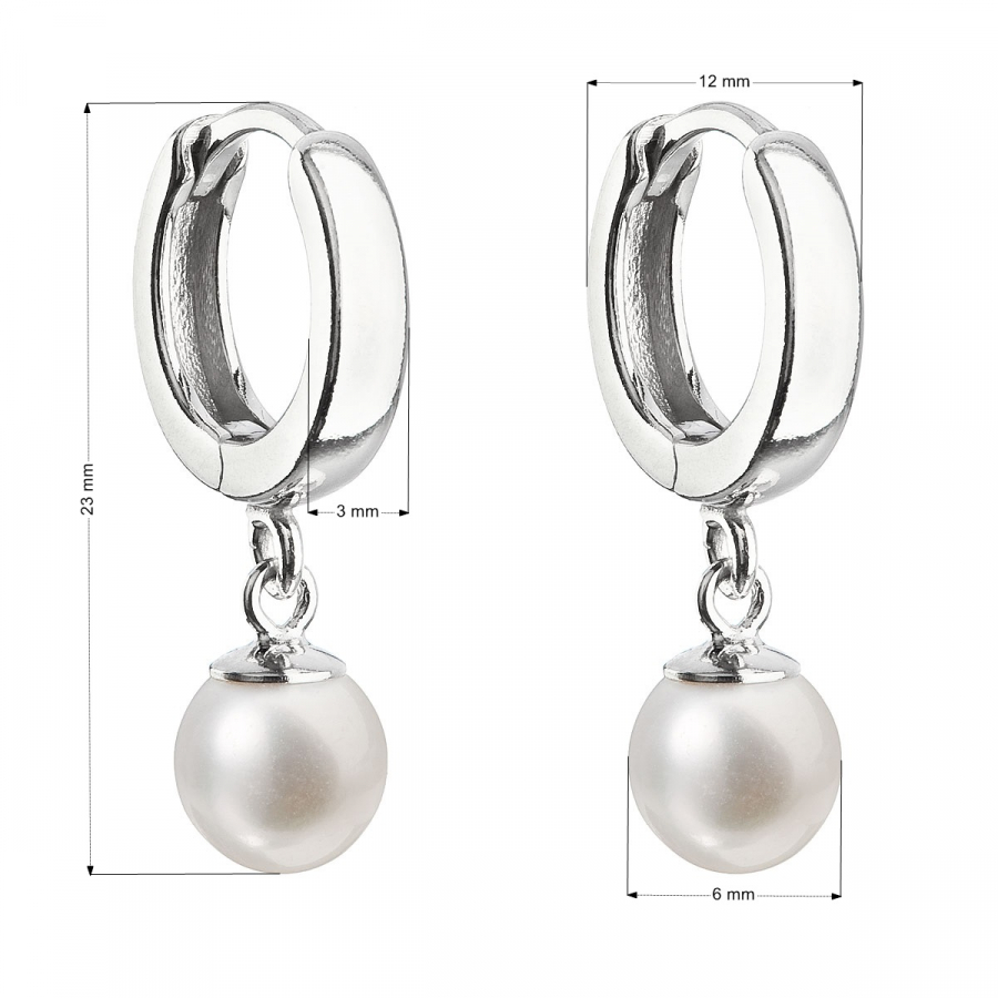 Parametre strieborných visiacich náušníc s bielou riečnou perlou 21008.1