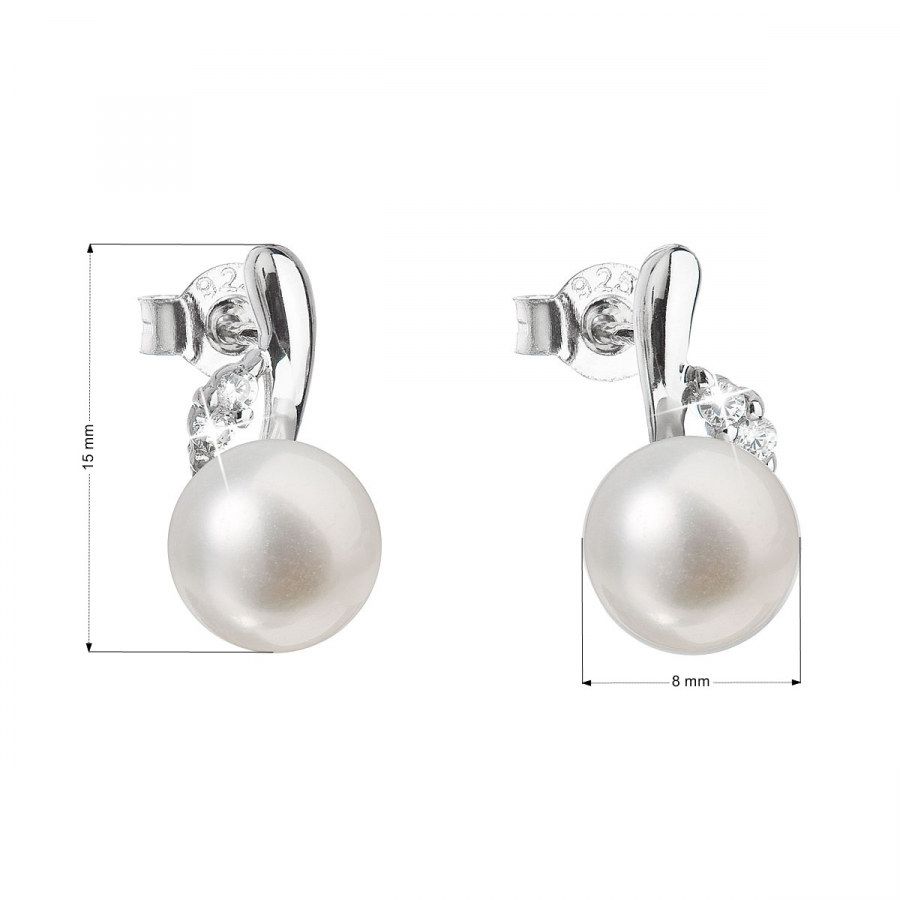 Parametre strieborných visiacich náušníc s bielou riečnou perlou 21029.1