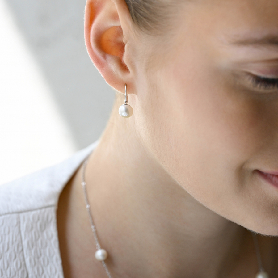 Strieborné náušnice visiace s bielou riečnou perlou 21044.1