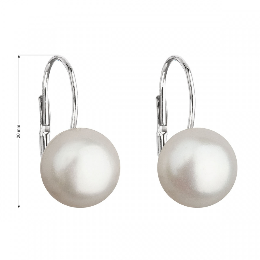 Parametre strieborných visiacich náušníc s bielou riečnou perlou 21045.1