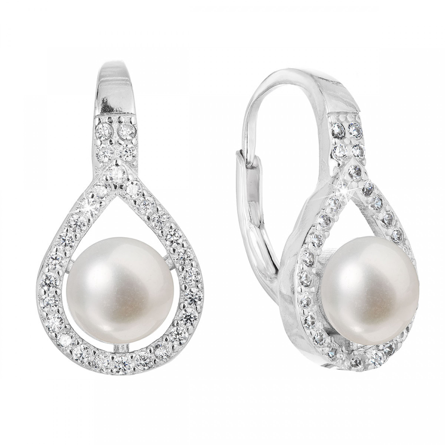 Strieborné náušnice visiace s bielou riečnou perlou 21053.1