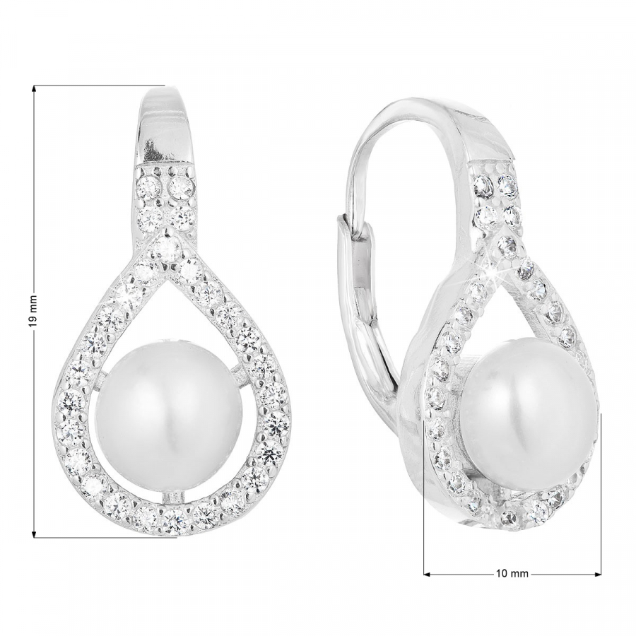 Parametre strieborných visiacich náušníc s bielou riečnou perlou 21053.1