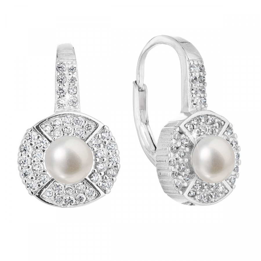 Strieborné náušnice visiace s bielou riečnou perlou 21054.1