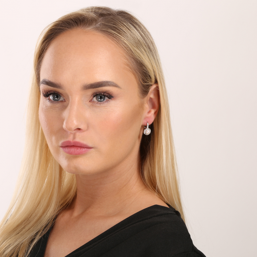 S perlovými náušnicami zdobenými mnohými priezračnými zirkónmi zažiarite, či už nimi doplníte svoj každodenný outfit alebo šaty na ples.