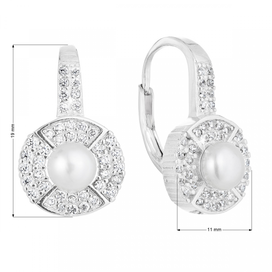 Parametre strieborných visiacich náušníc s bielou riečnou perlou 21054.1