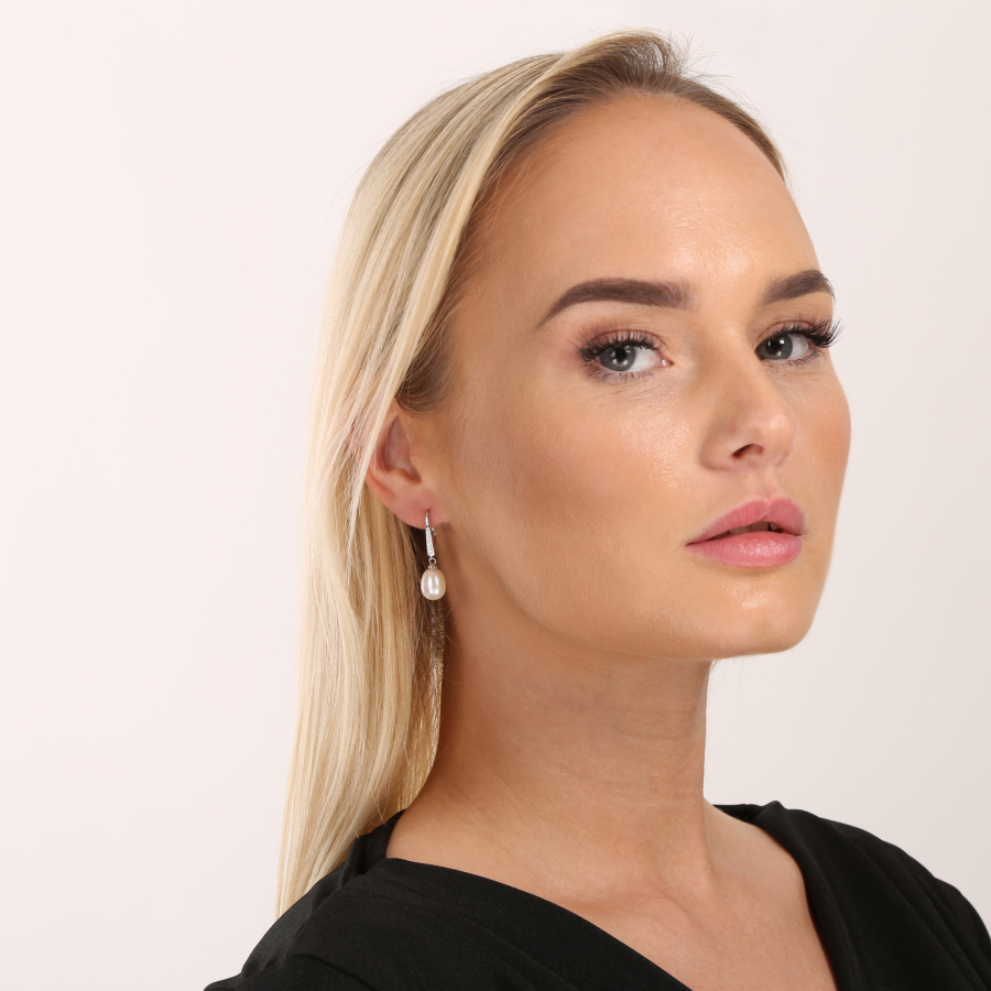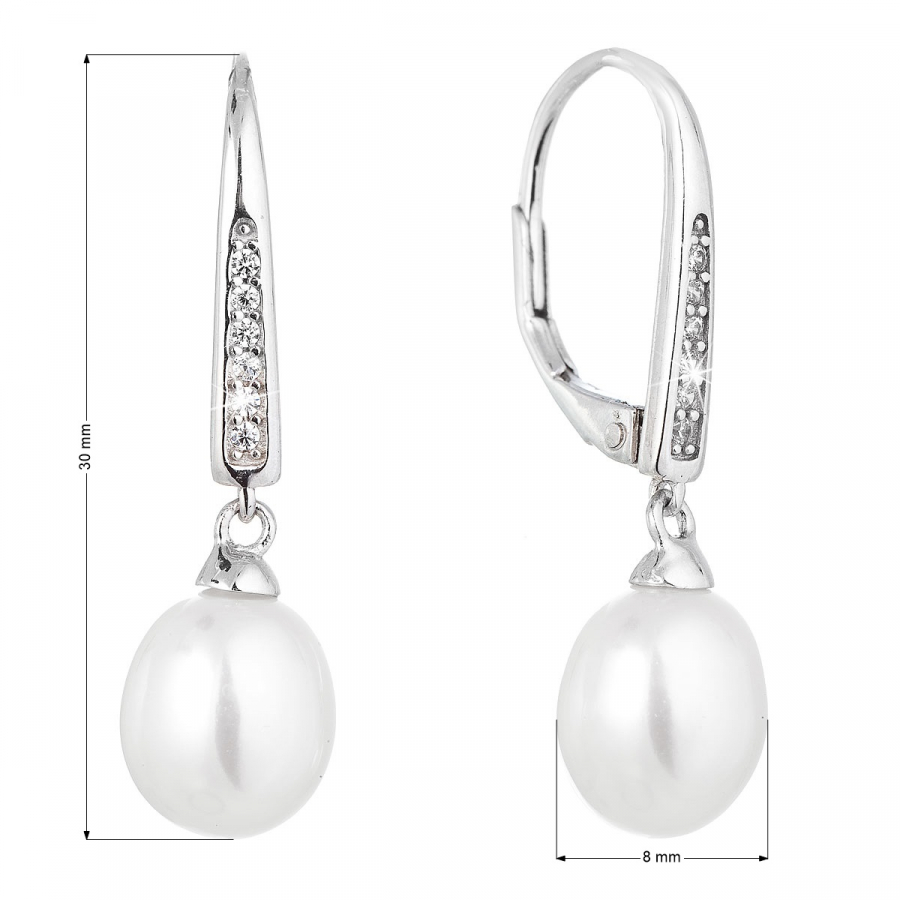 Strieborné náušnice visiace s bielou riečnou perlou 21059.1
