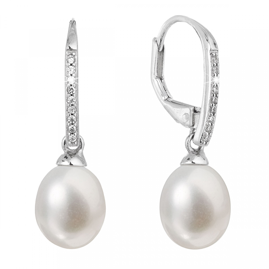 Strieborné náušnice visiace s bielou riečnou perlou 21060.1
