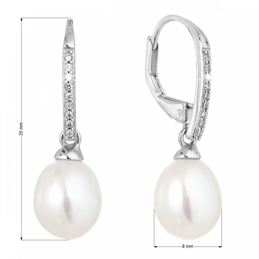 Parametre strieborných visiacich náušníc s bielou riečnou perlou 21060.1