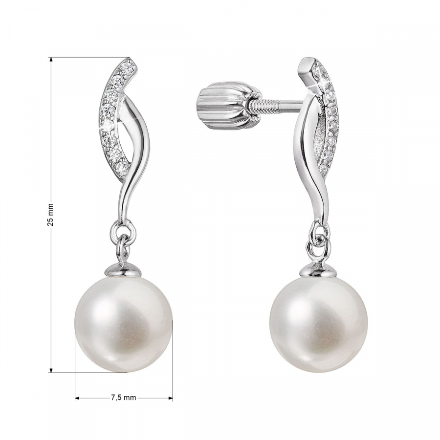 Náušnice 21094.1B sú vyrobené zo striebra o rýdzosti 925/1000 vrátane povrchovej úpravy ródiom. Ródium ochráni šperk proti sčerneniu, zožltnutiu i poškriabaniu. Pravá biela riečna perla sa hojdá na striebre vysadenom čírymi zirkónmi. Priemer perly je 7,5 mm a kvalita A. Šperk neobsahuje prídavok niklu, a tak ho môžu nosiť aj ľudia náchylní na alergické reakcie. Náušnice majú zapínanie na balónik , ktorý ich ochráni proti nechcenej strate.