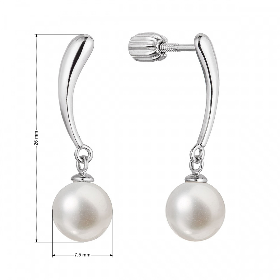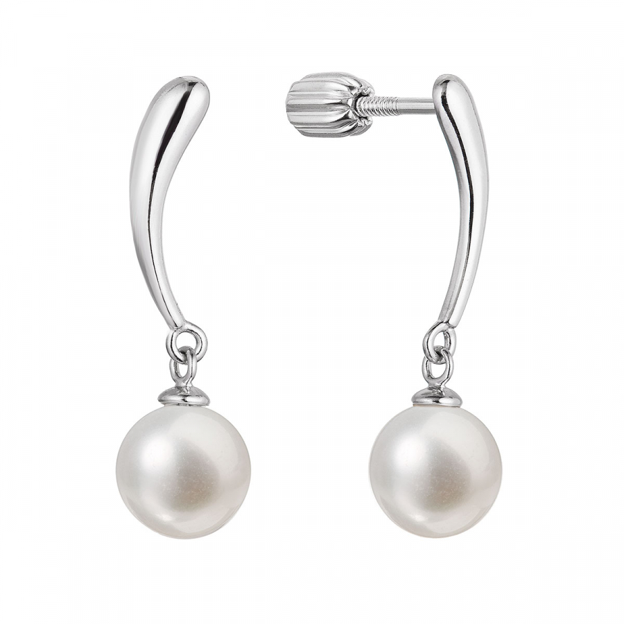 Strieborné náušnice visiace s guľatou riečnou perlou bielej 21095.1B
