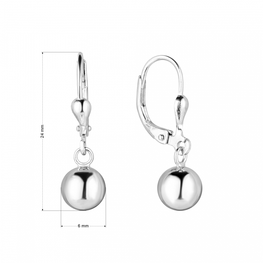 Strieborné náušnice visiace s hojdajúcou sa guličkou 61061